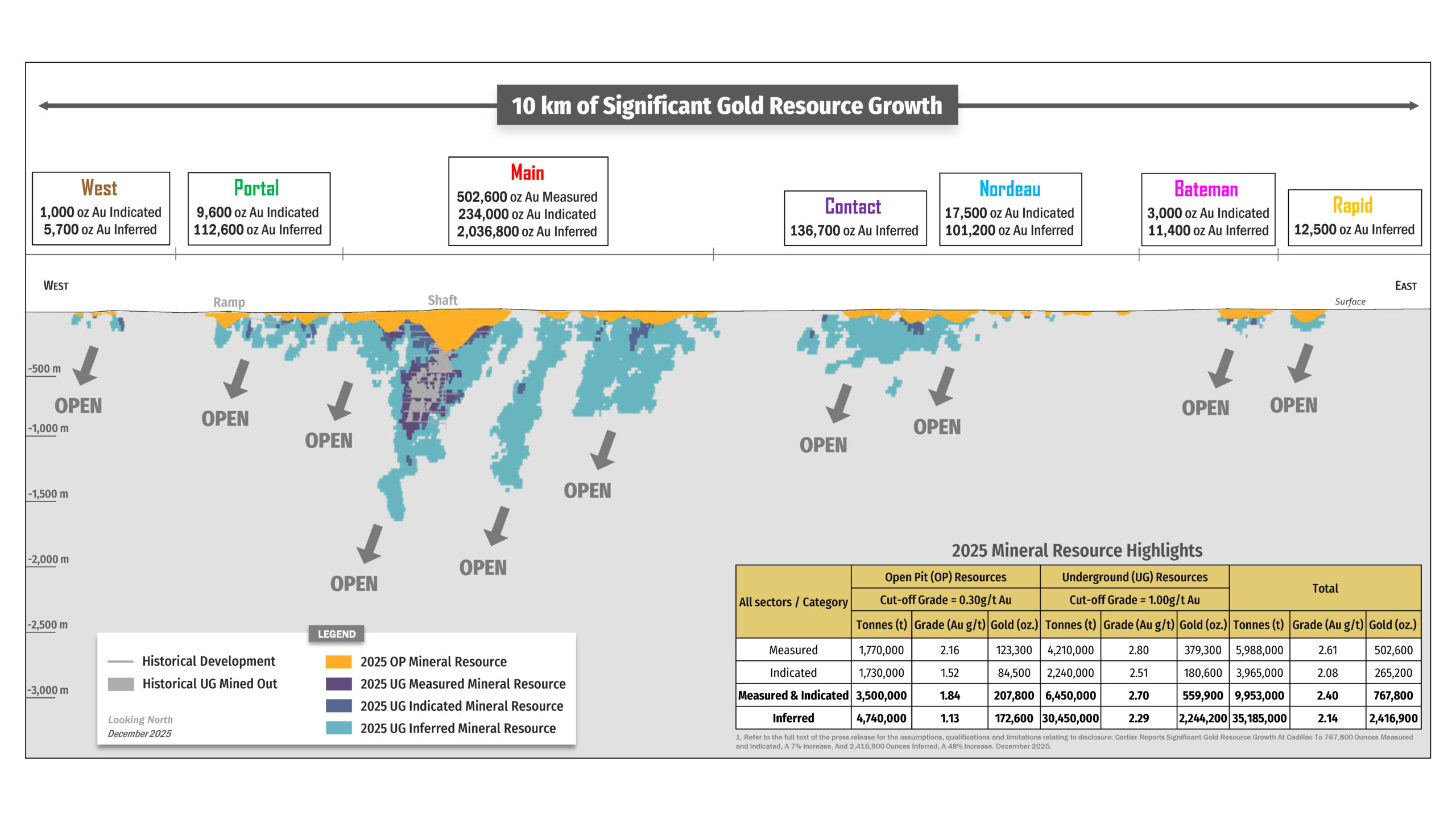 ” The updated gold resource, incorporating both pit-constrained and underground scenarios, represents a new achievement and positions Cartier with a high degree of development flexibility at the Cadillac Project. This optionality enhances the project’s strategic value and will be further assessed through an updated PEA. Cadillac stands out as one of the few large-scale Quebec gold projects still delivering rapid resource growth, situated in a top-tier, pro-mining jurisdiction with established infrastructure and workforce. We look forward to advancing key value-creation milestones in 2026. ” – Philippe Cloutier, President and CEO of Cartier.